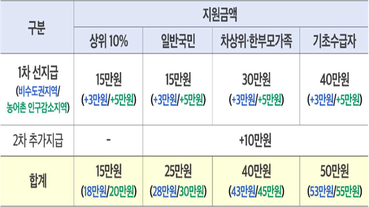 - 전통시장 :5만 원 이상 결제 시 시장상품권 증정 (지자체별)